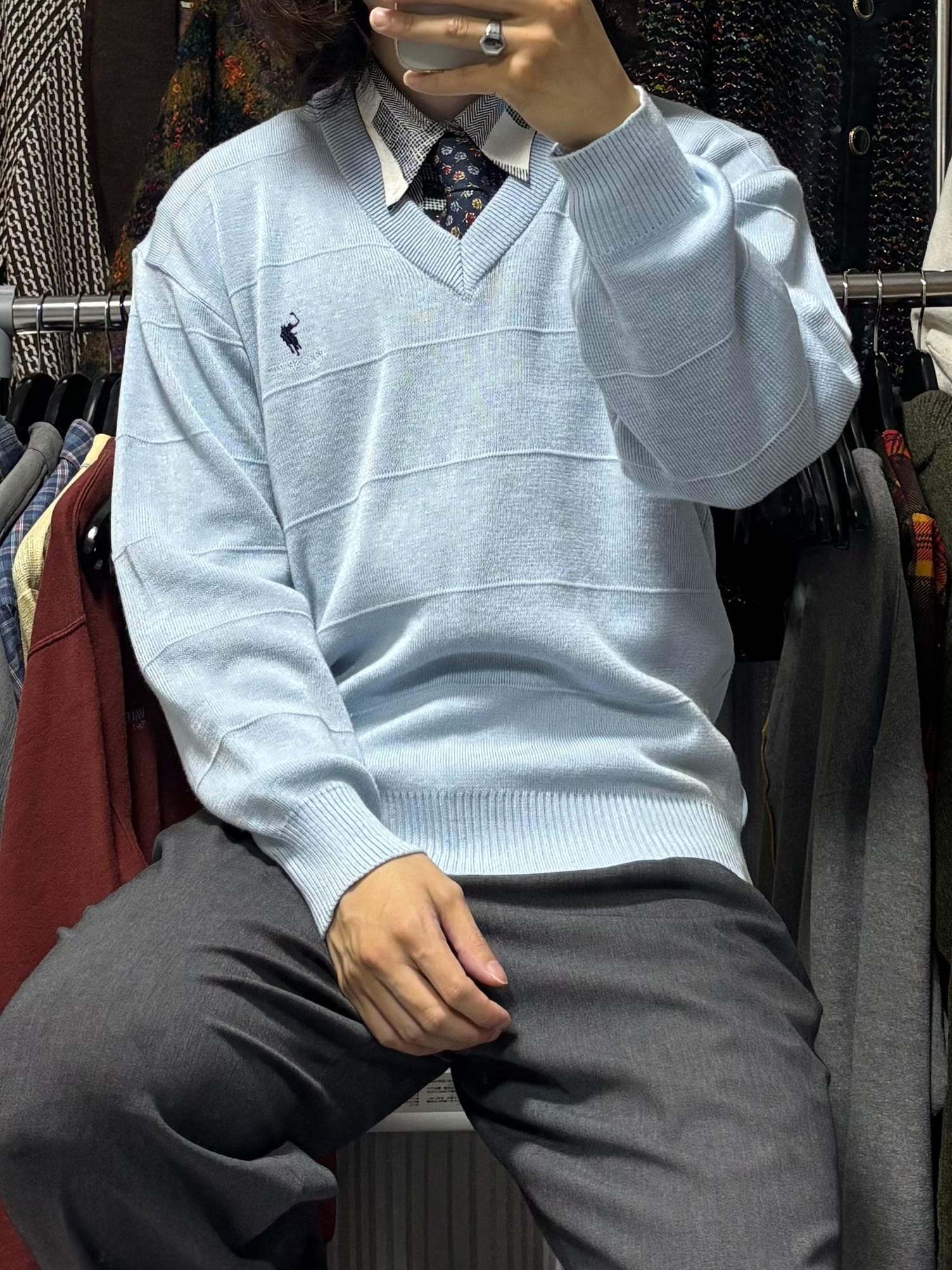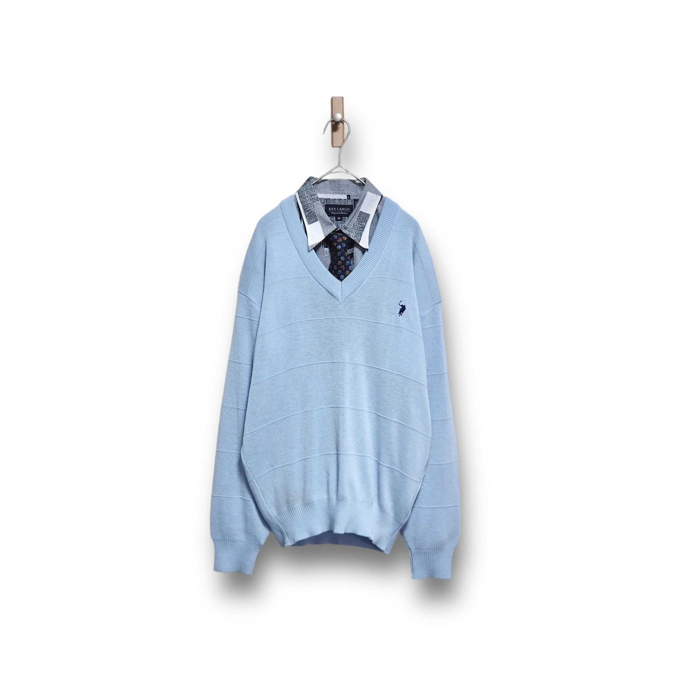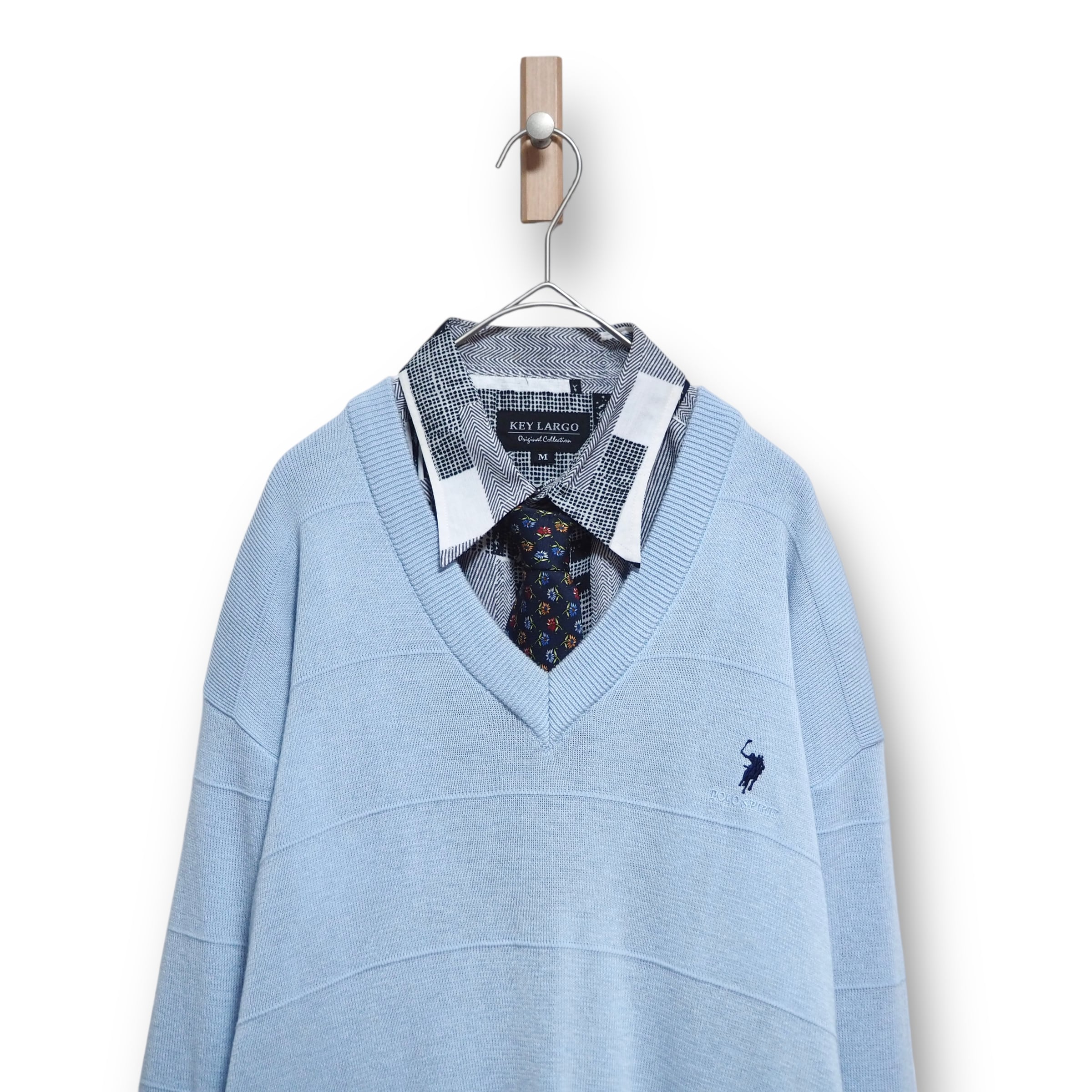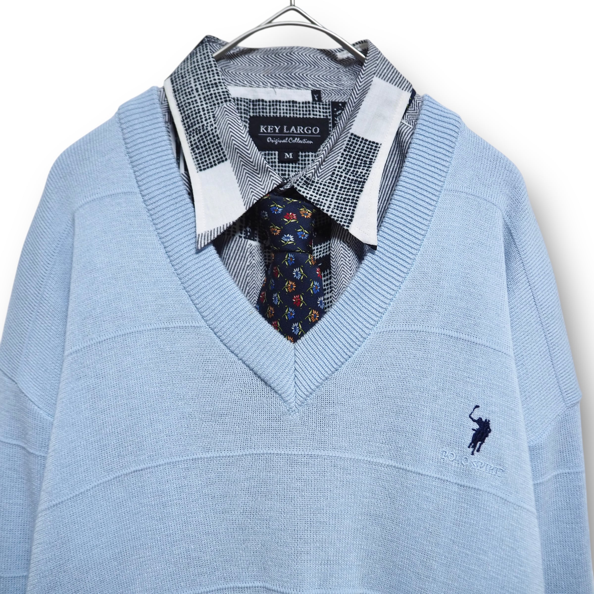 【VINTAGE】ネクタイシャツ+Vネックニット