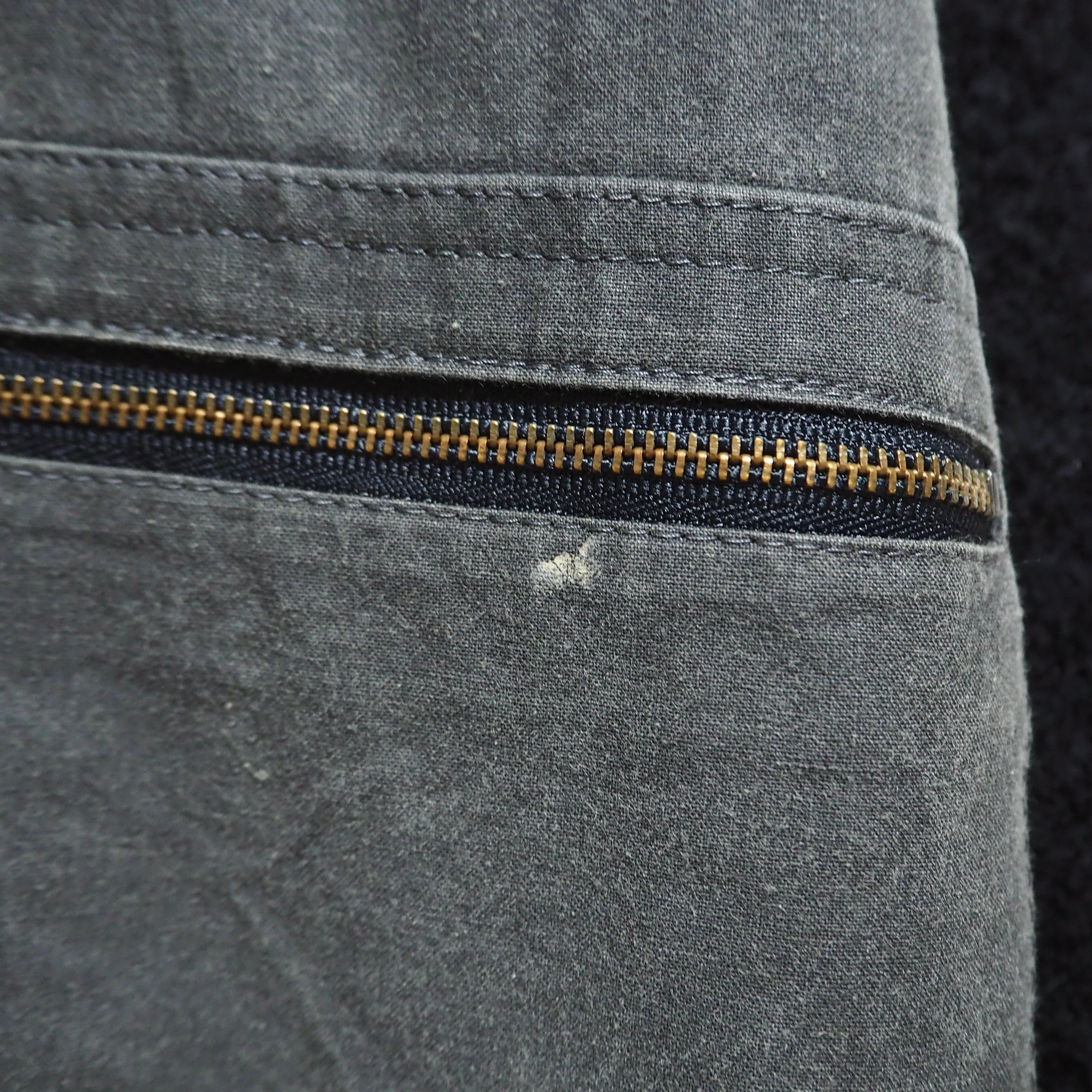 表面ポケット付近に小さな汚れあり。使用感によるアイロン跡のようなものあり。