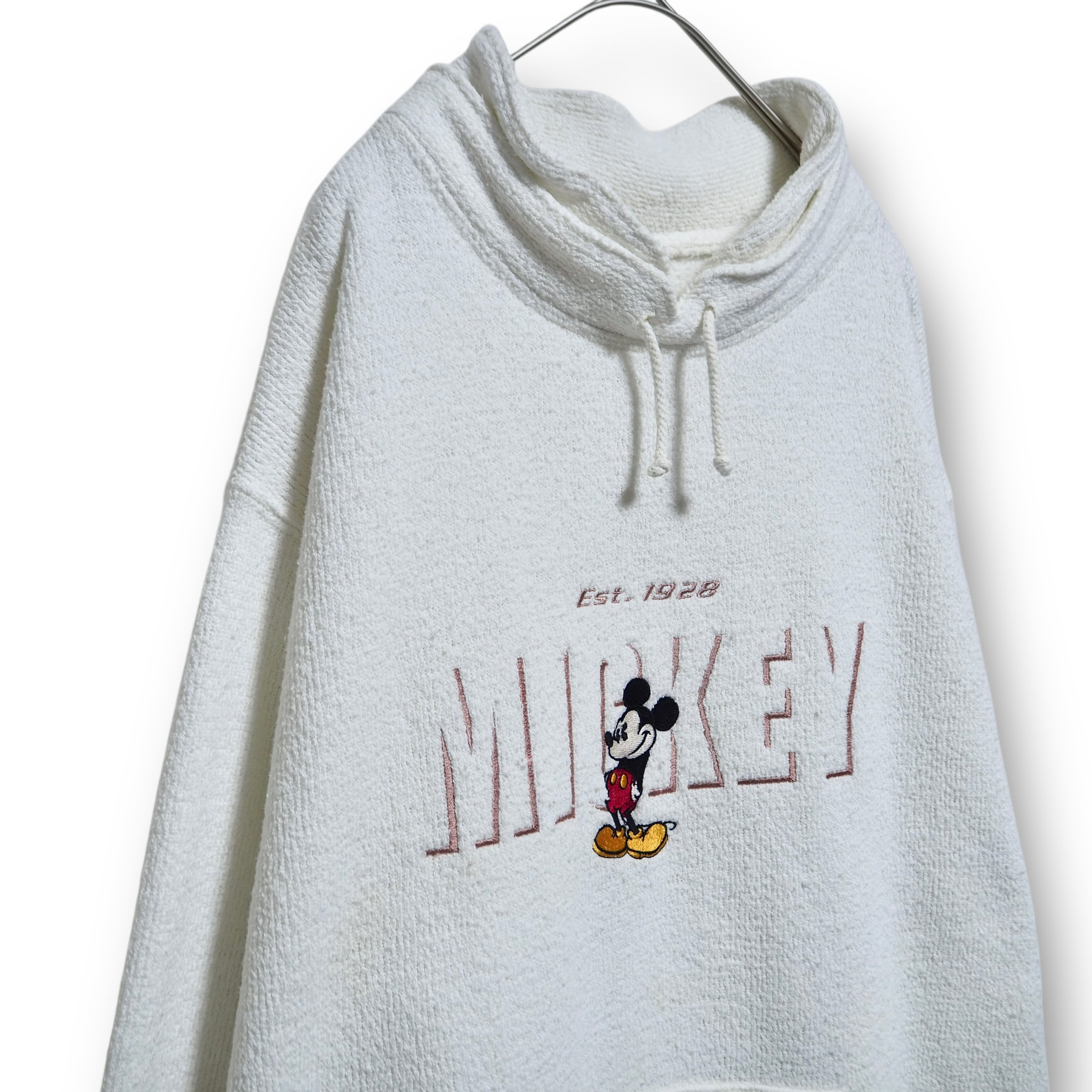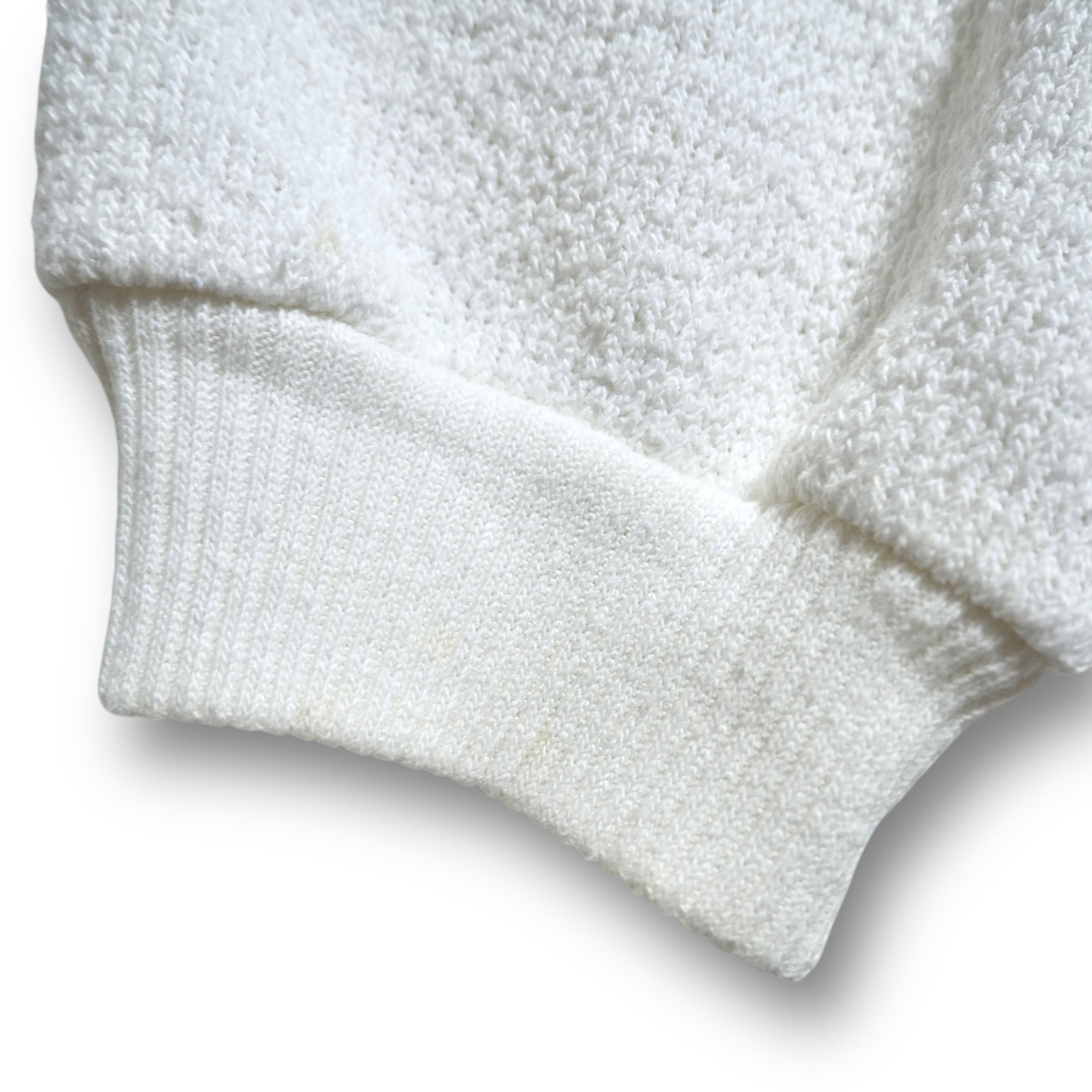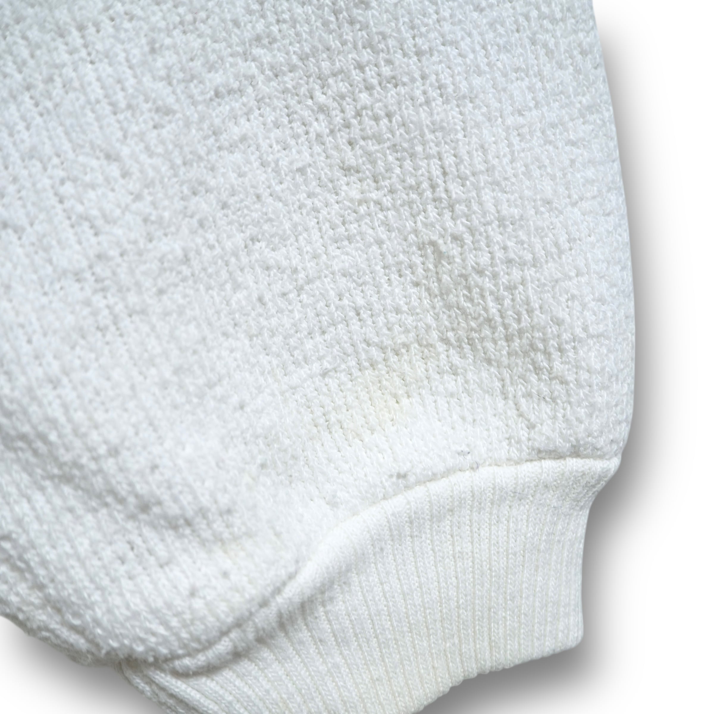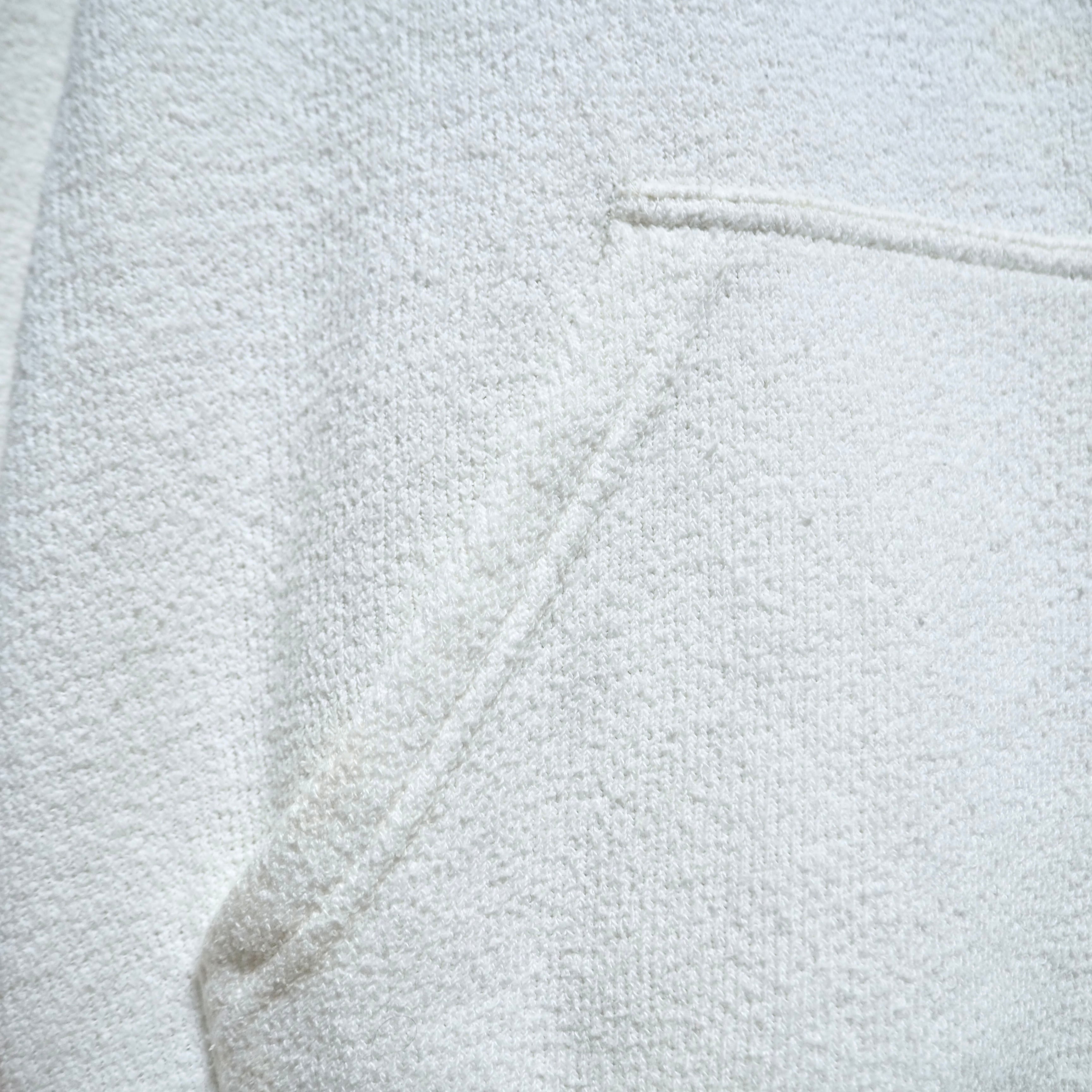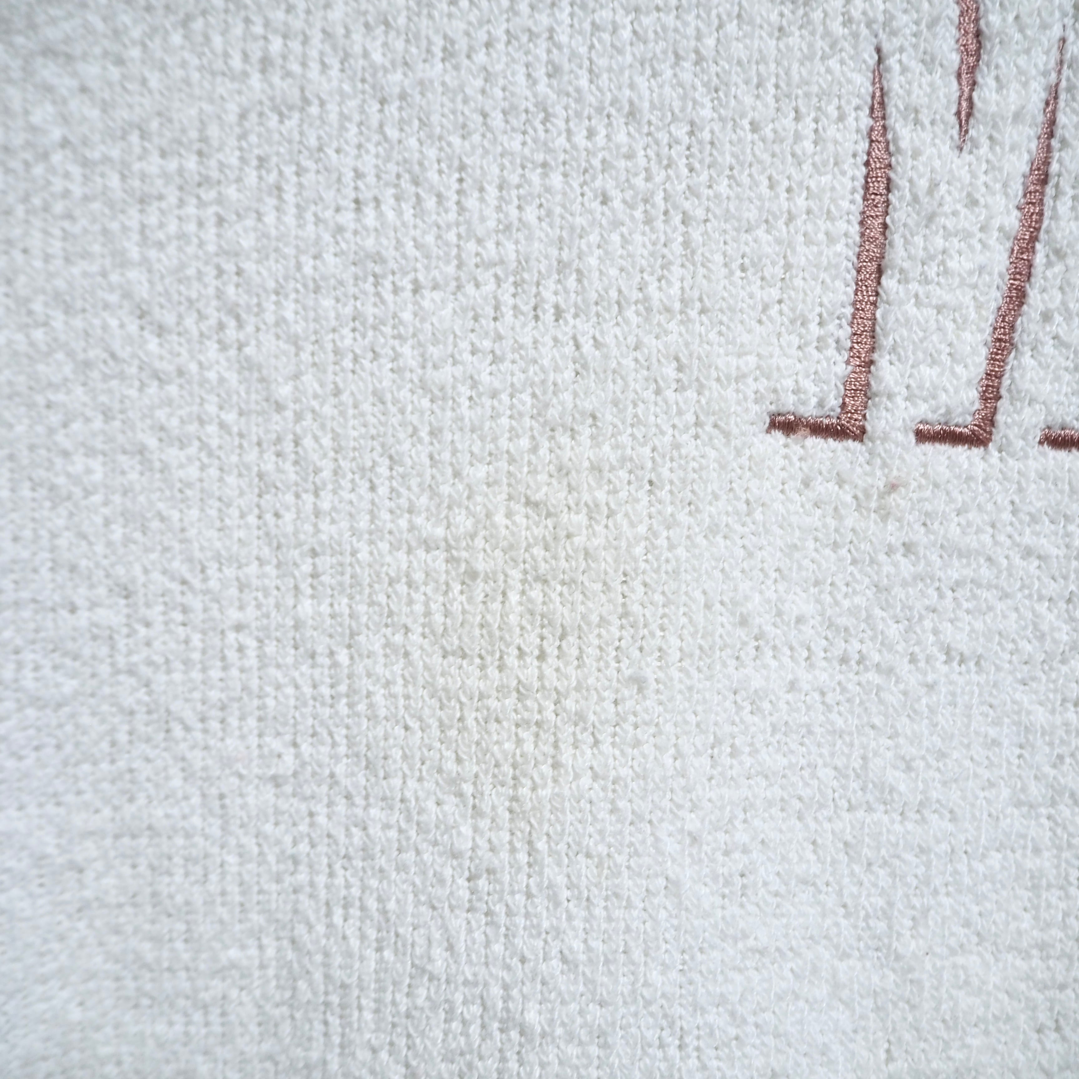 刺繍付近や袖に目立たない小さな汚れあり。パイル生地と呼ばれるタオルのような手触りをしています。