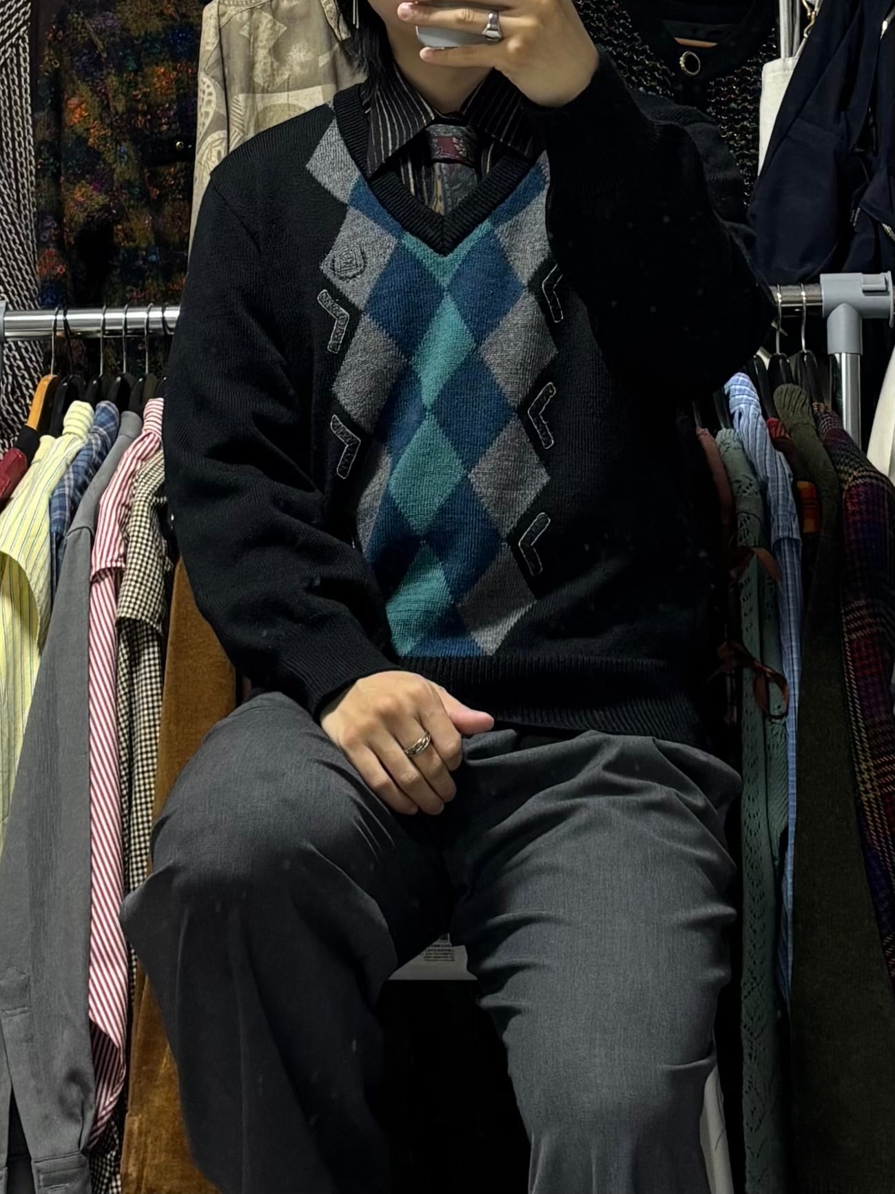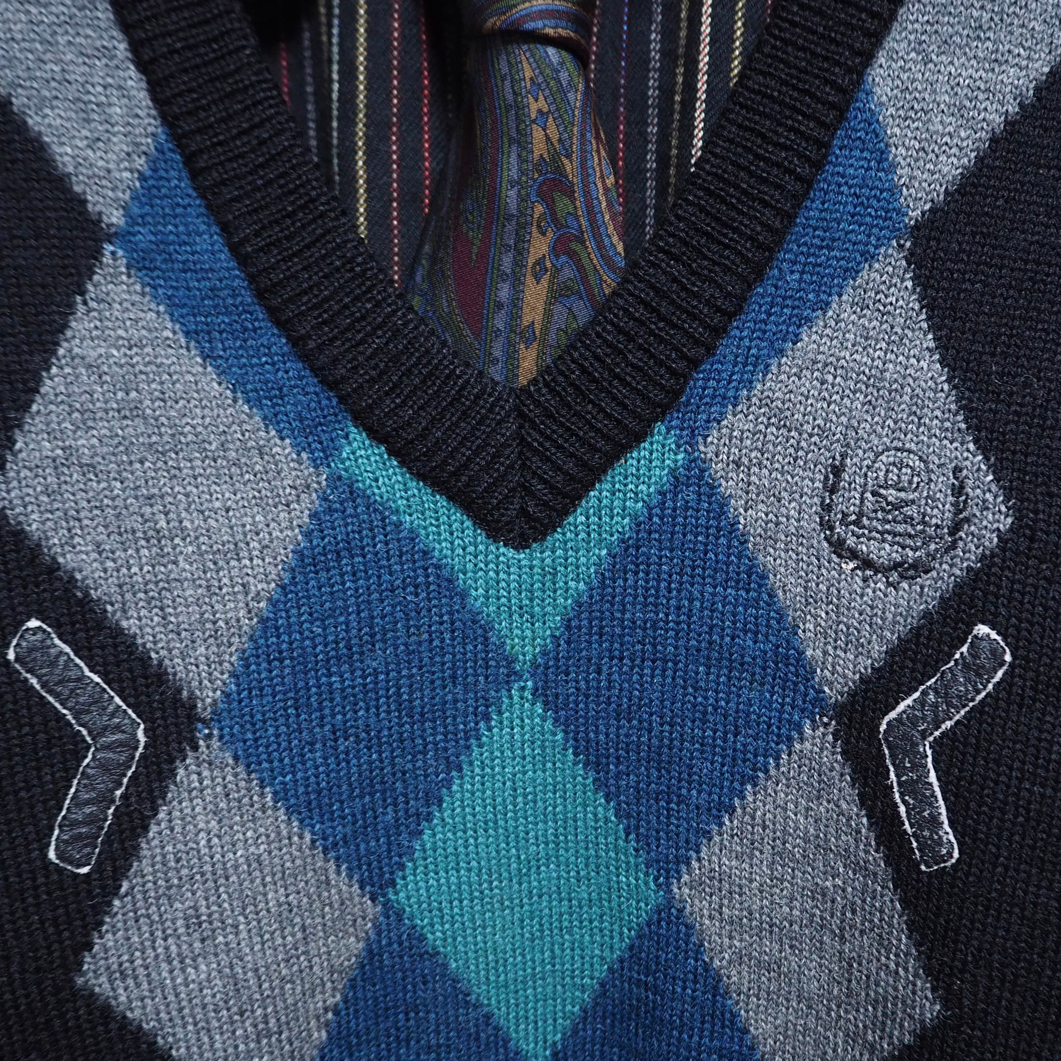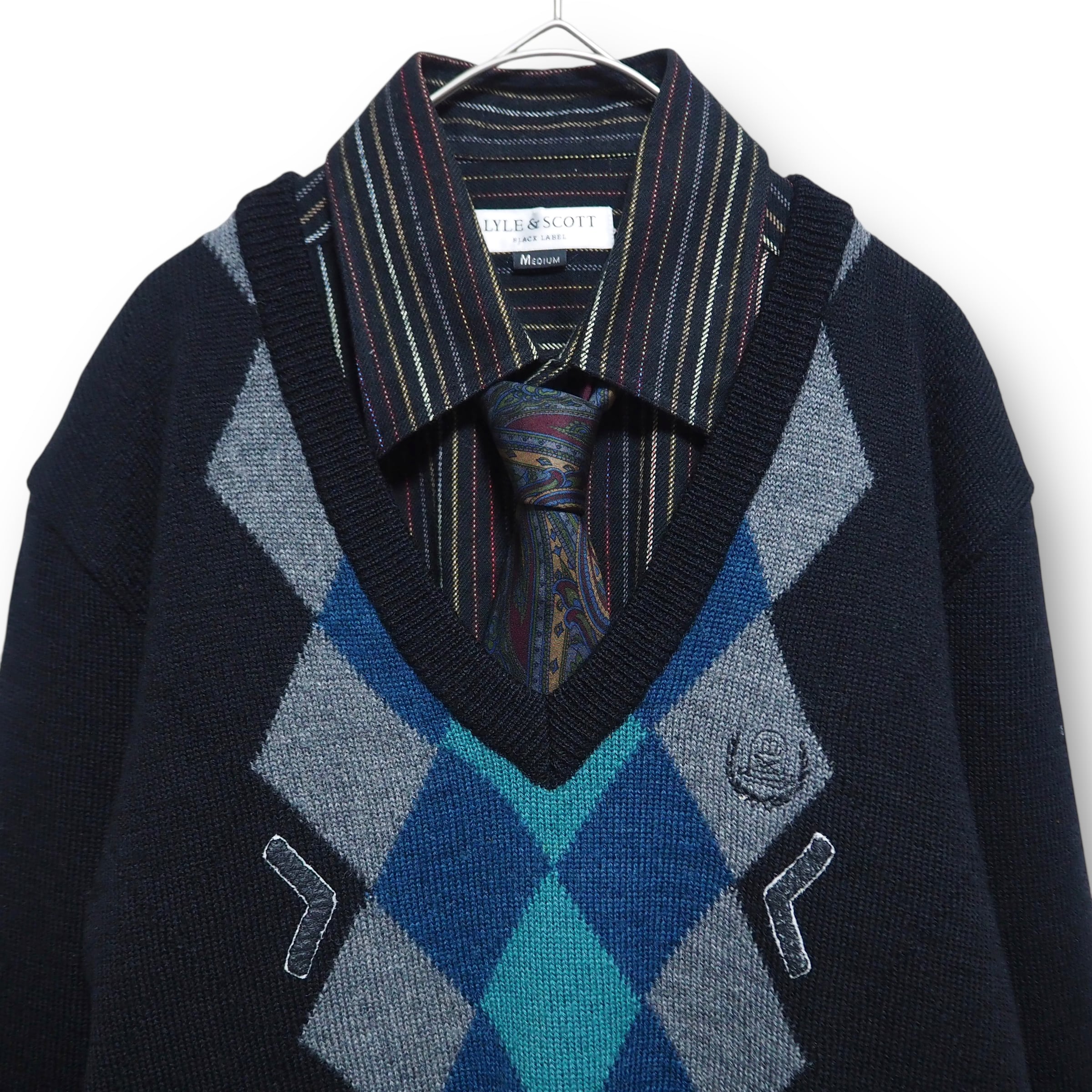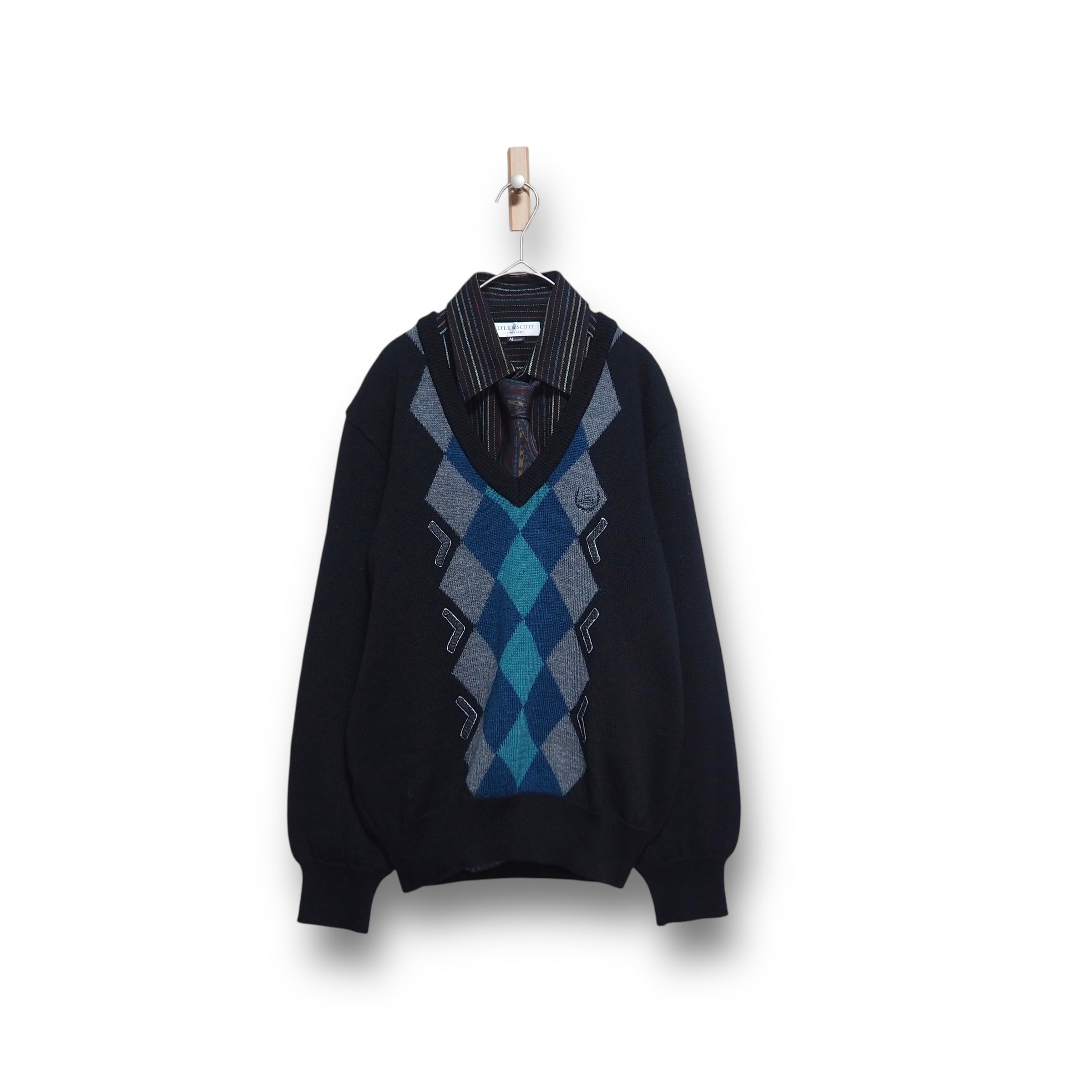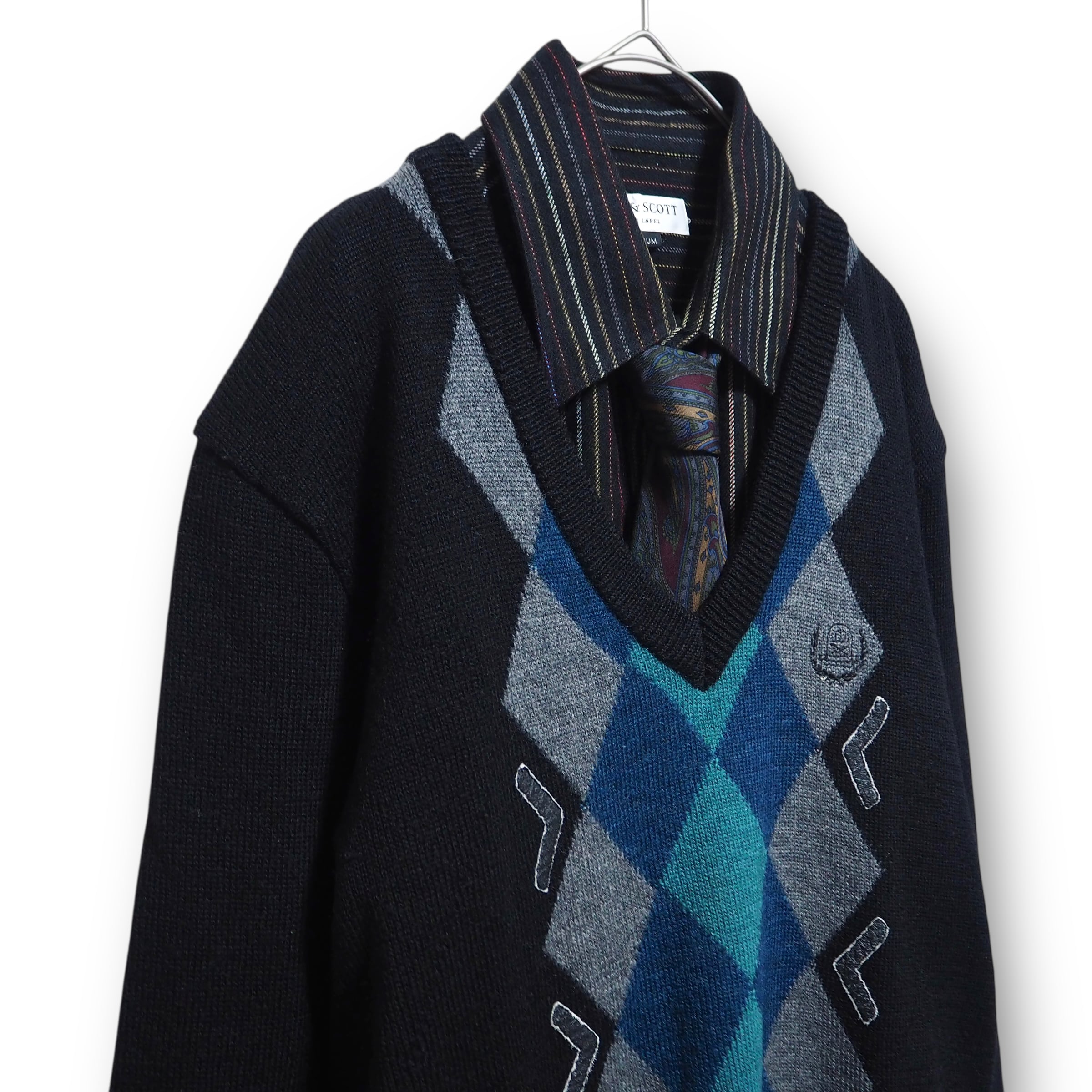 【VINTAGE】ネクタイシャツ+Vネックニット