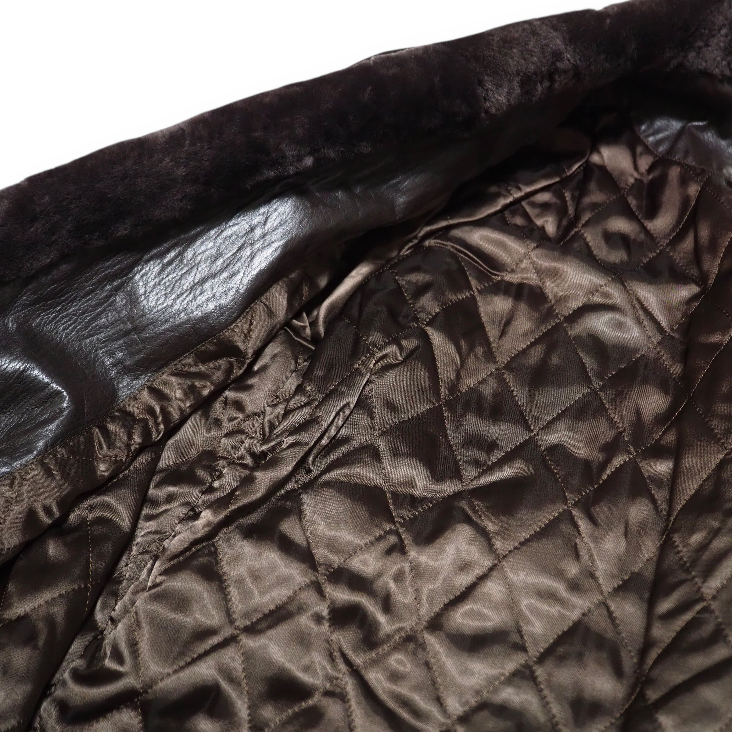 肩パッドあり。裏地薄手のキルティング加工。裏面上部に微かに色褪せあり。