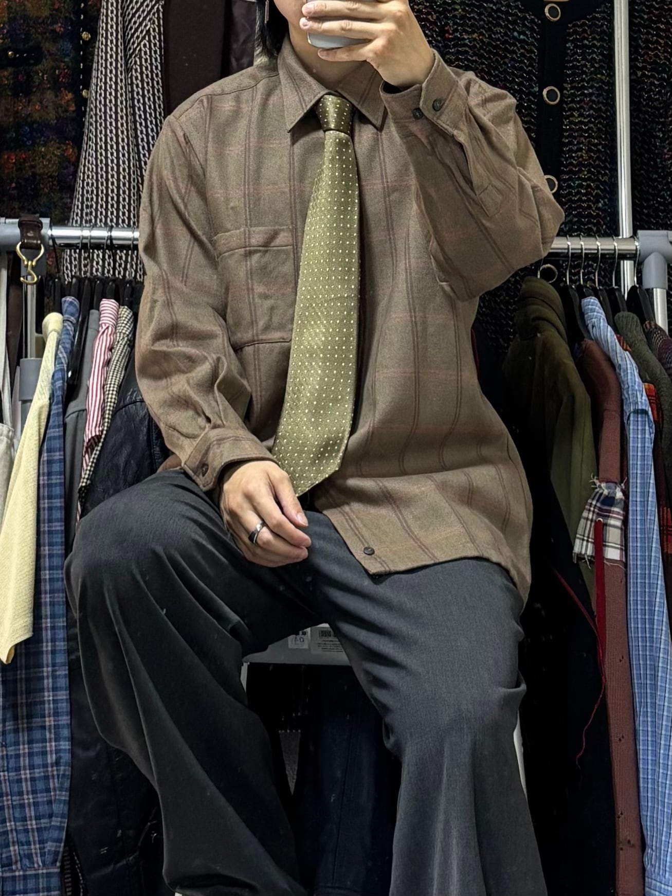 【VINTAGE】長袖デザインシャツ+ネクタイ
