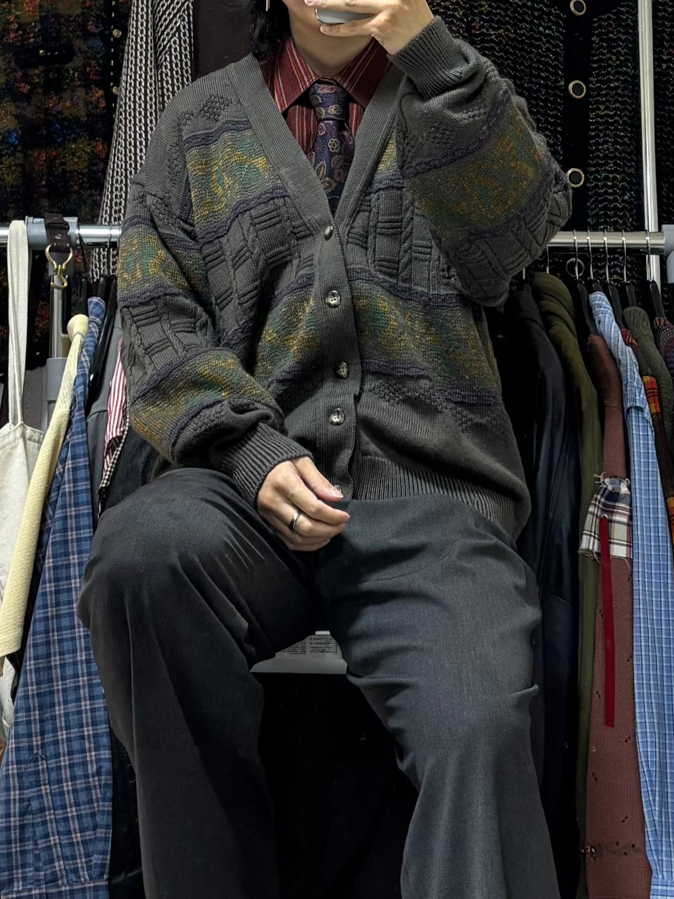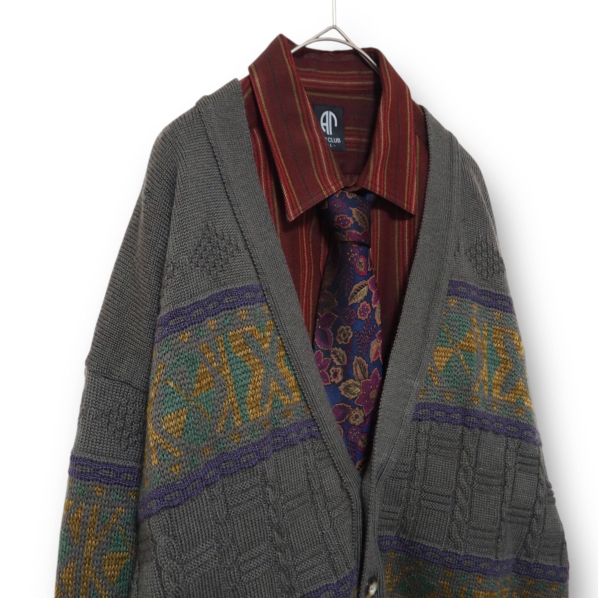 【VINTAGE】ネクタイシャツ+カーディガン