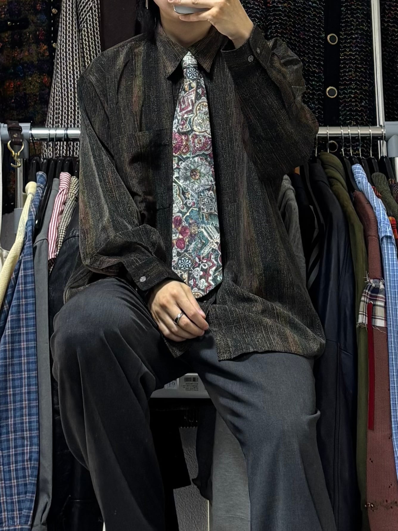 【VINTAGE】長袖デザインシャツ+ネクタイ