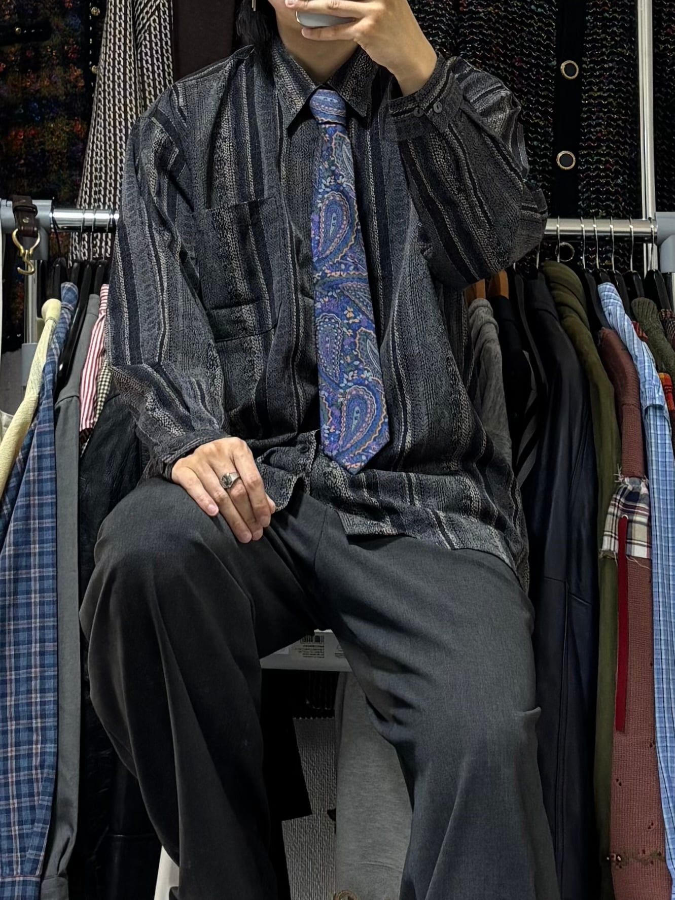 【VINTAGE】長袖デザインシャツ+ネクタイ