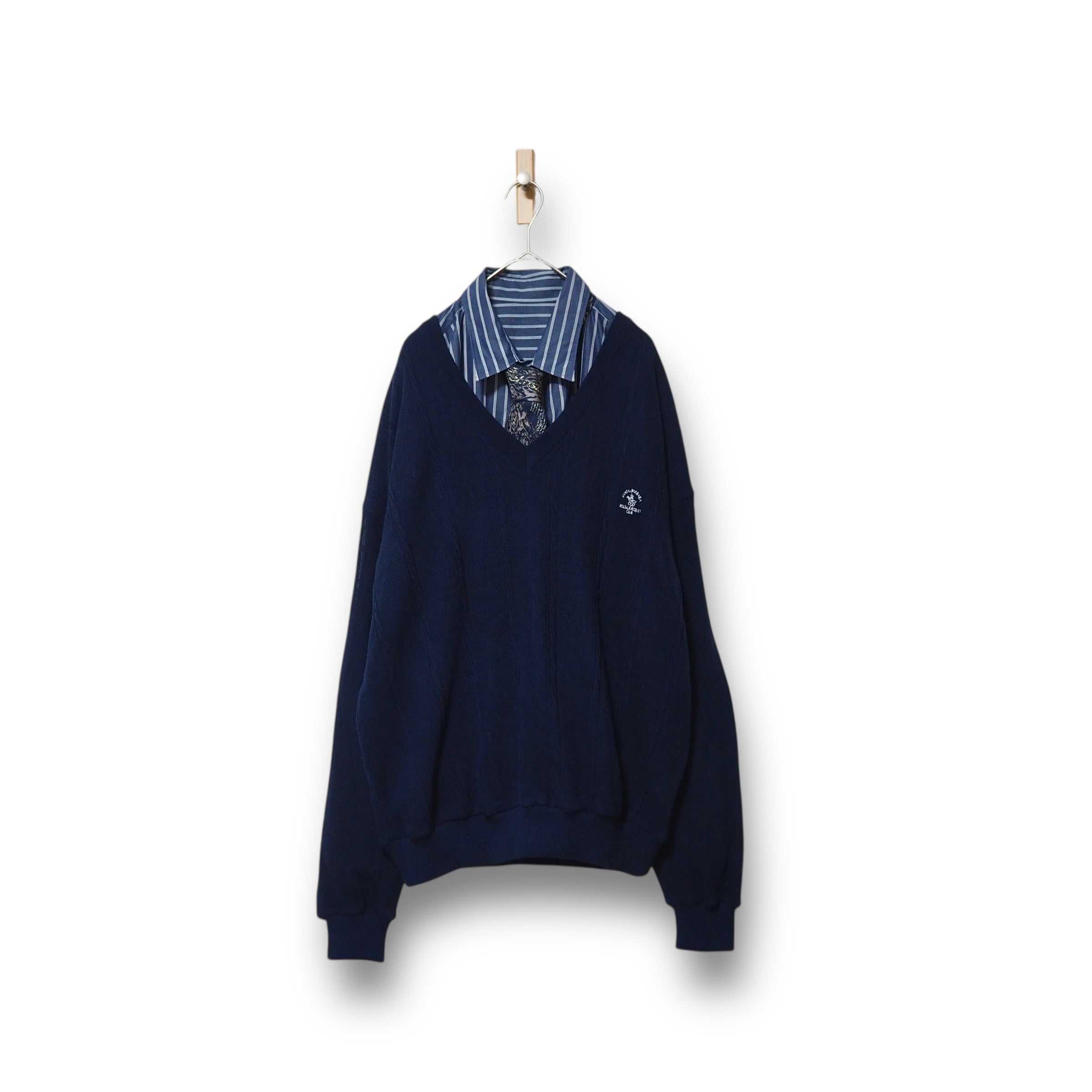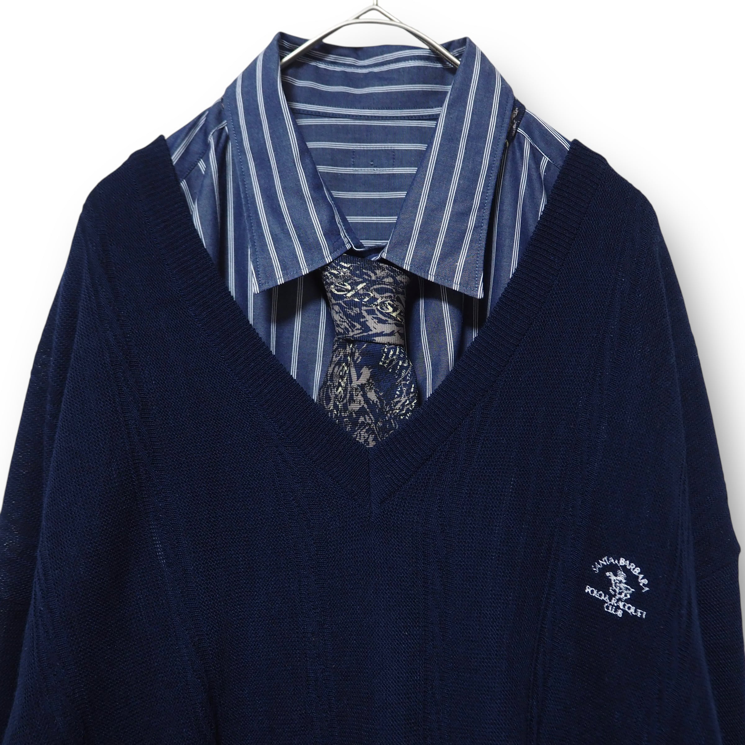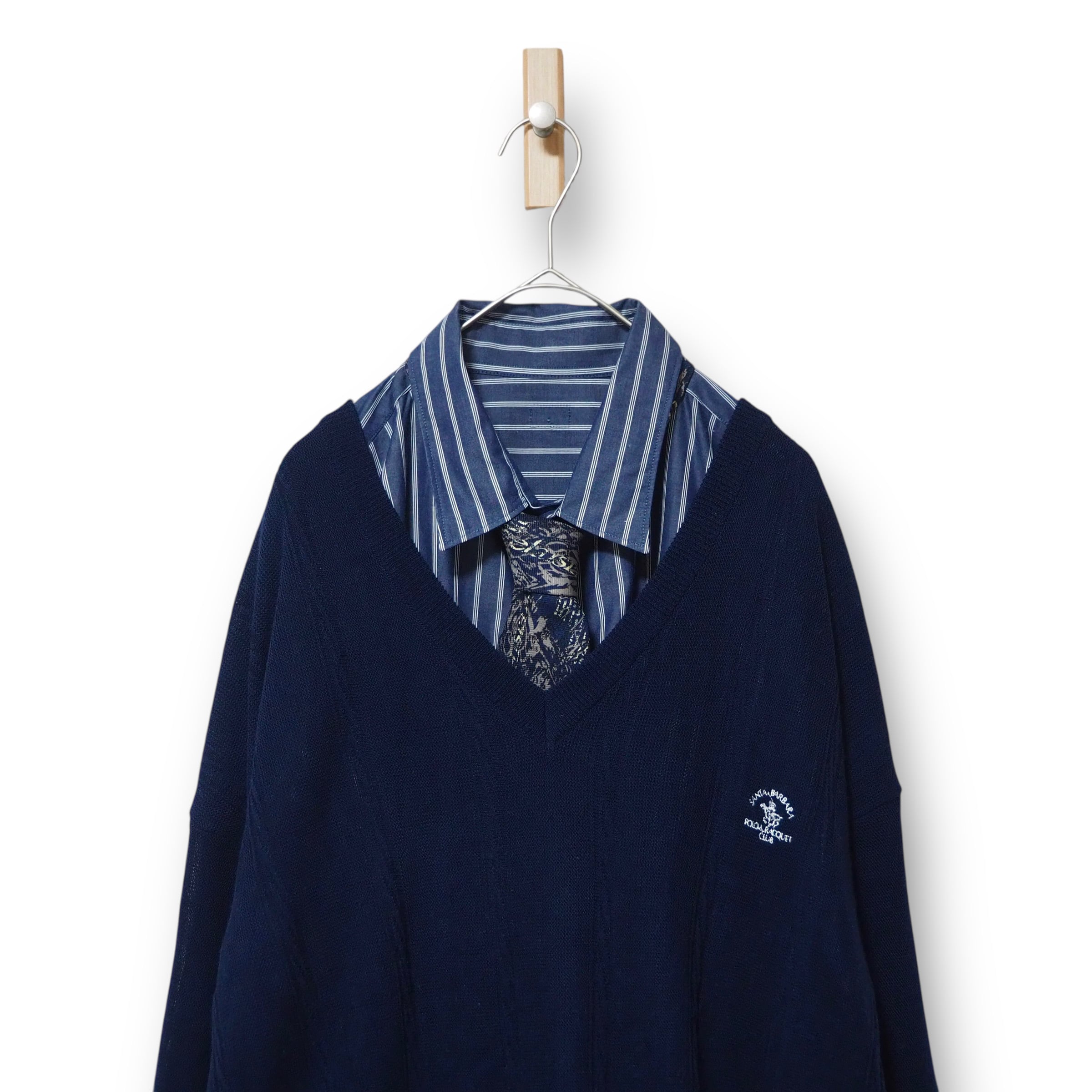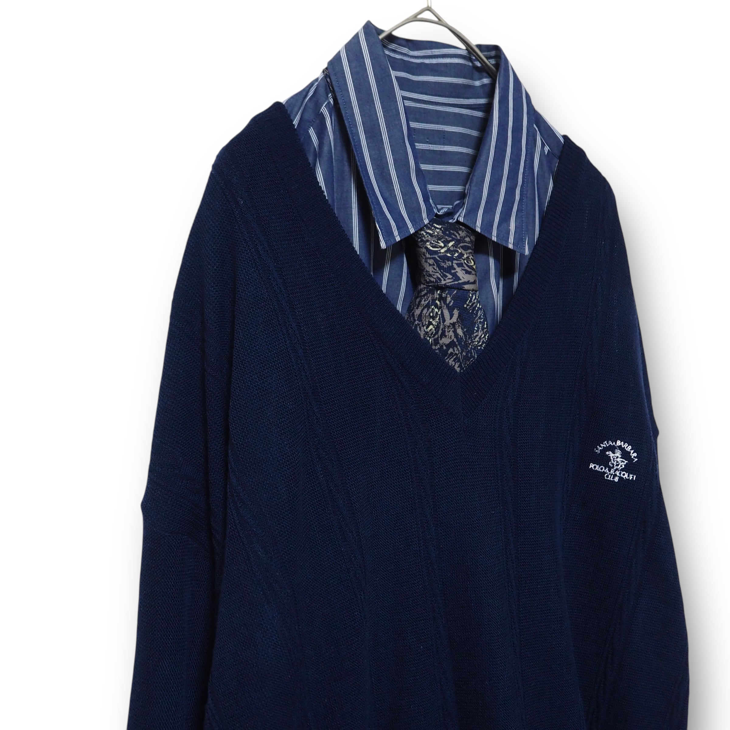 【VINTAGE】ネクタイシャツ+Vネックニット