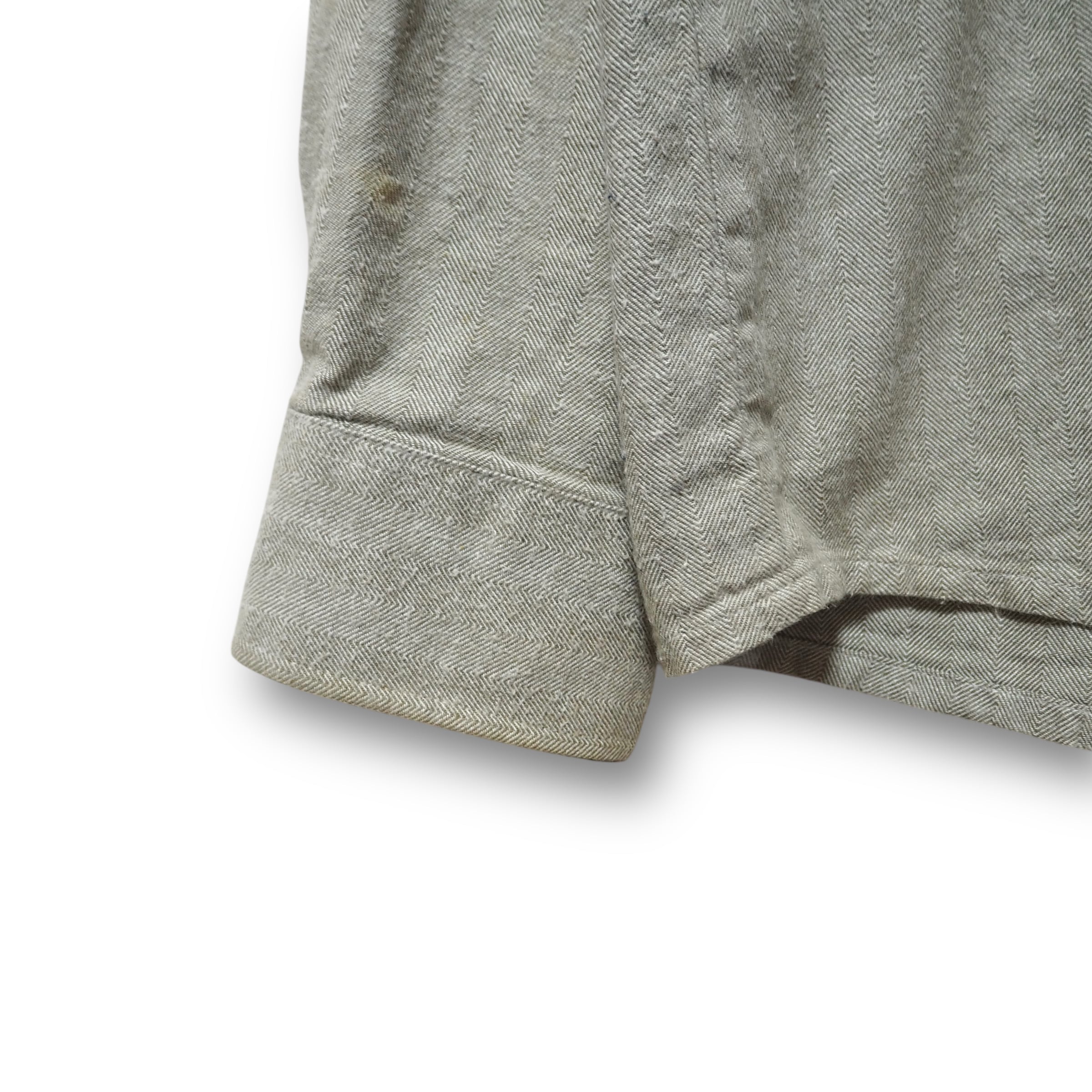 襟元や表面右袖、下部、裏面腹部に汚れあり。全体的に多少の毛羽立ちあり。