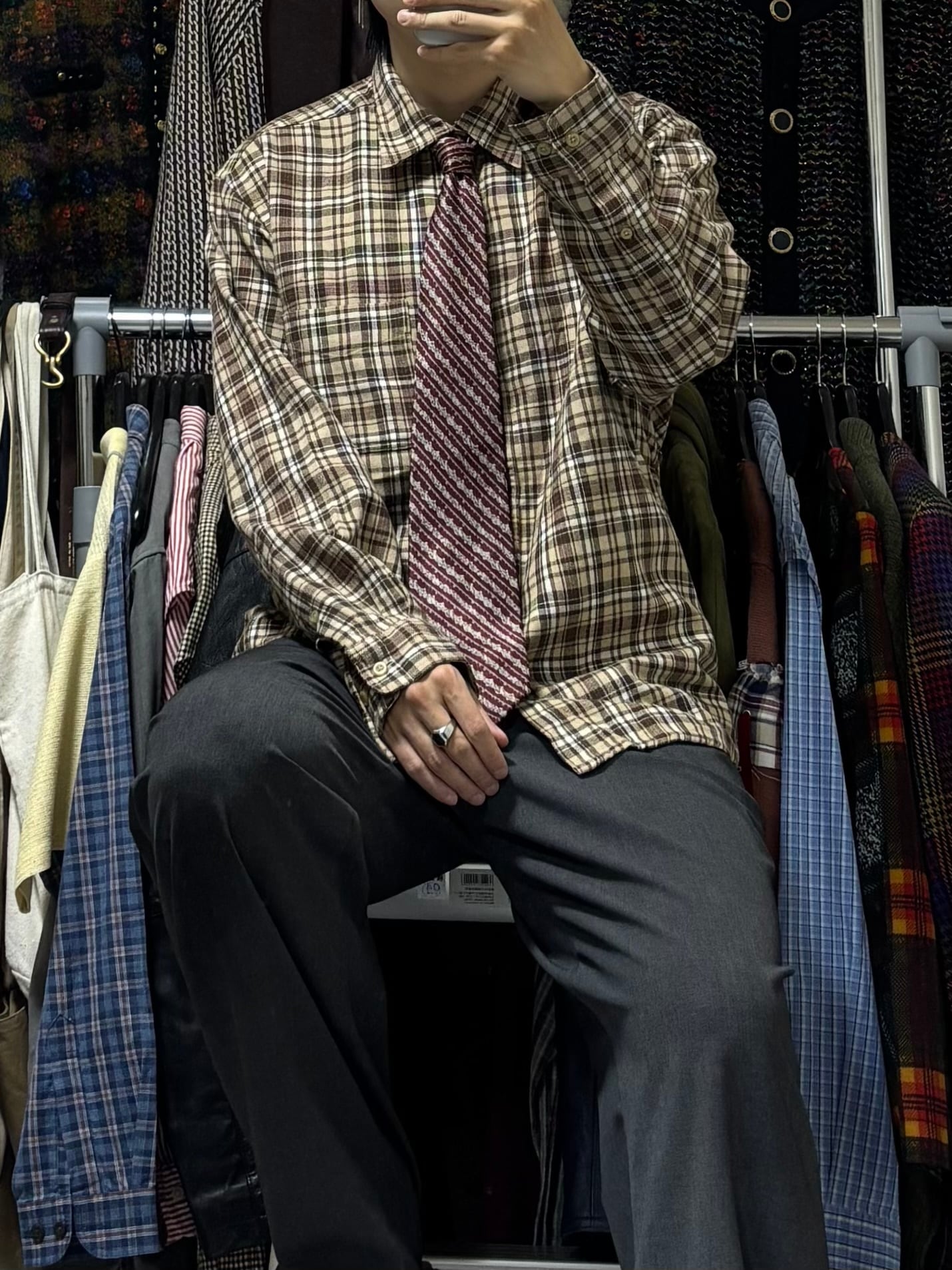 【VINTAGE】長袖デザインシャツ+ネクタイ