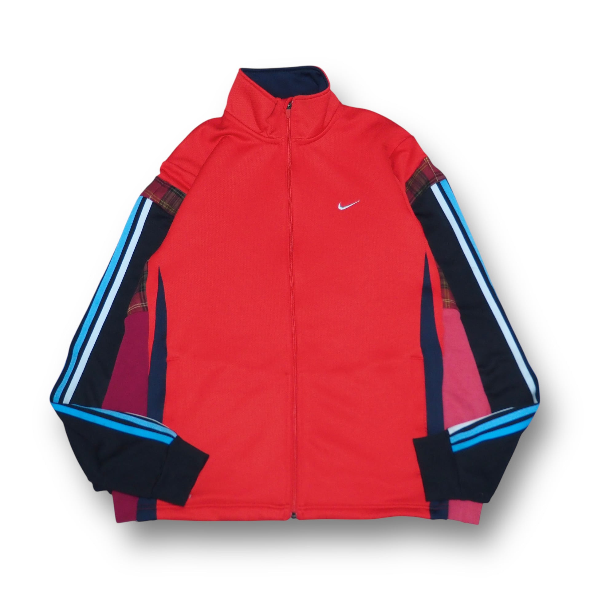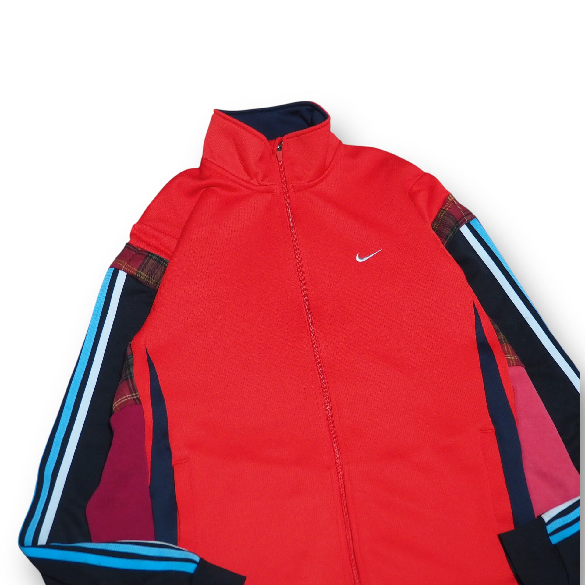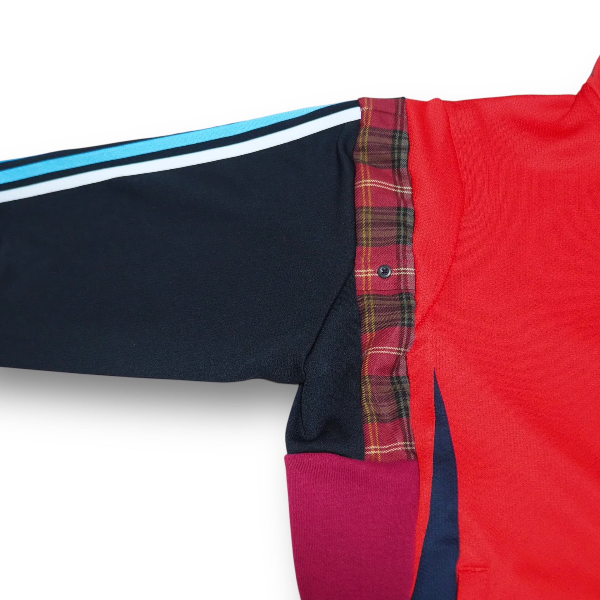 定番のトラックジャケットを解体しシンメトリーライクに再構築したリメイクアイテムです。