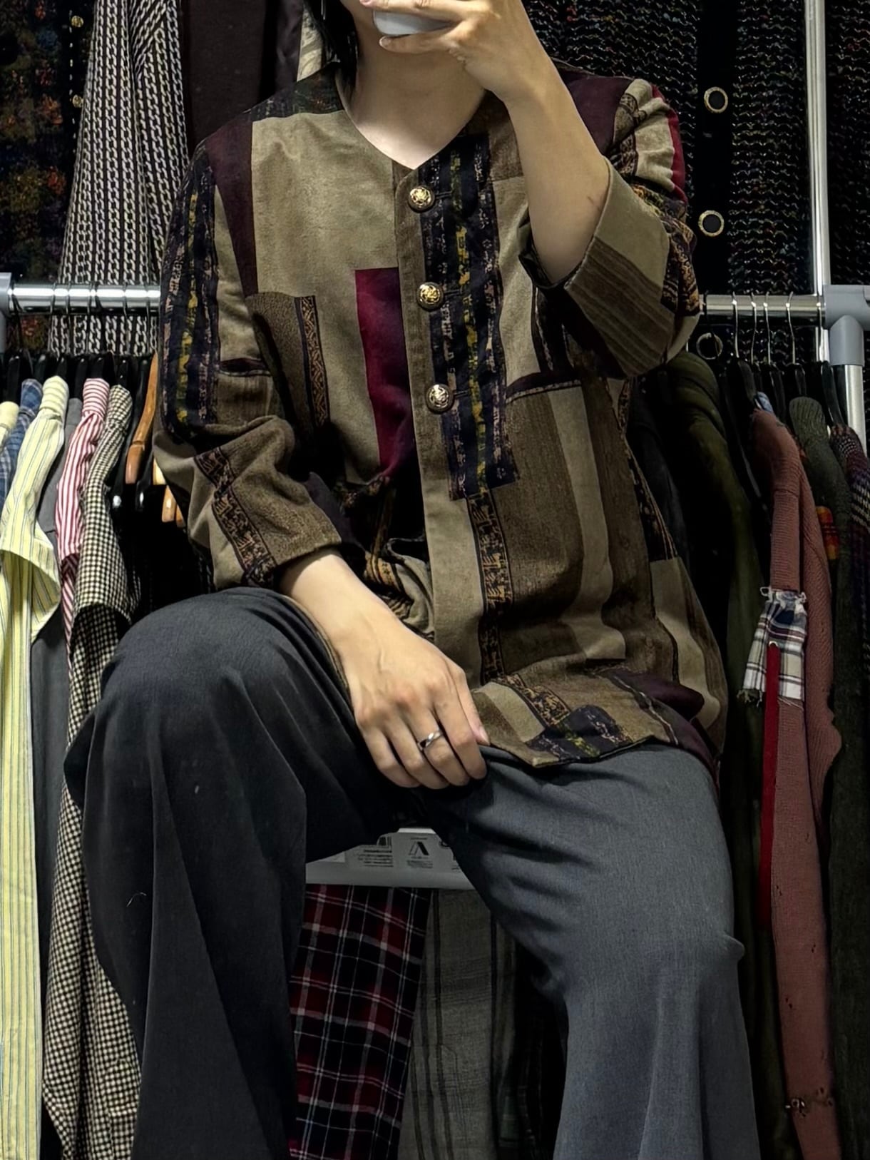 【VINTAGE】ノーカラーシャツジャケット